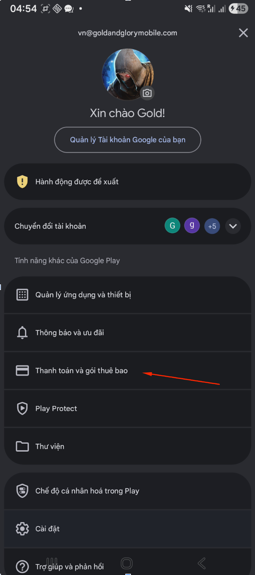 IV> Nạp thẻ thông qua Google Play Gift Card